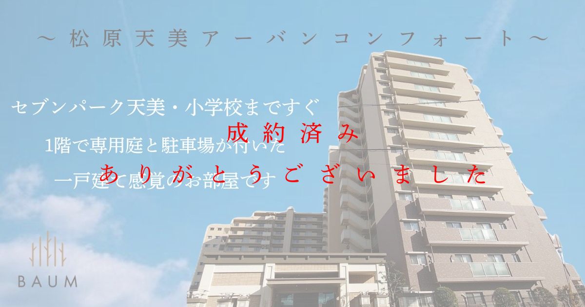 松原天美アーバンコンフォート 14階 2026 3/27 実績 March 27, 2026 ご成約ありがとうございました。 ご遠方からお引越しされるお客様にご購入頂きました。 これからリフォームした後に、引き渡しの予定です♪ 詳細はこちら 実績 よかったらシェアしてね! URLをコピーしました! URLをコピーしました! 堺市東区南野田戸建 堺市美原区阿弥 古家付き土地 この記事を書いた人 飯干浩次 関連記事 松原市立部2丁目戸建 March 27, 2026 堺市東区日置荘北町3丁戸建 March 27, 2026 松原天美アーバンコンフォート 8階 March 27, 2026 ユニハイム浜寺諏訪ノ森 March 27, 2026 八尾市都塚1丁目 古家付き土地 March 27, 2026 GREEN BOWL法円坂 3階 March 27, 2026 堺市美原区阿弥 古家付き土地 March 27, 2026 堺市東区南野田戸建 March 27, 2026 コメント コメントする コメントをキャンセルコメント ※ 名前 ※ メール ※ サイト 次回のコメントで使用するためブラウザーに自分の名前、メールアドレス、サイトを保存する。 上に表示された文字を入力してください。